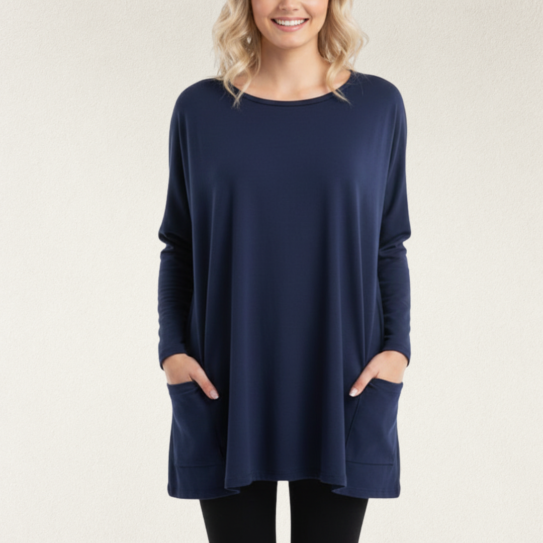 • Layer-friendly shape – works well with leggings, slim jeans or as an outer layer during cooler moments.